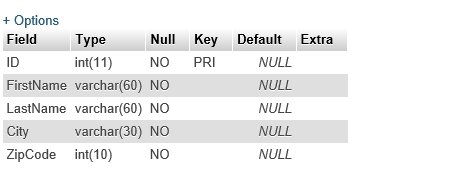customers表的列也是使用PHPMyAdmin工具创建的。
